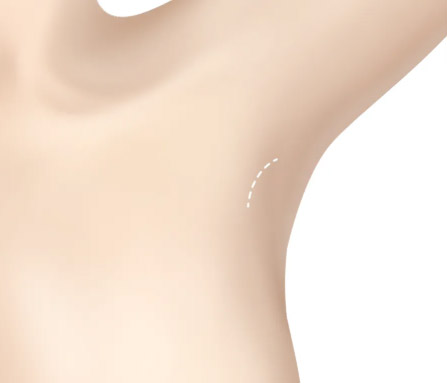 沿腋下褶皱线切开